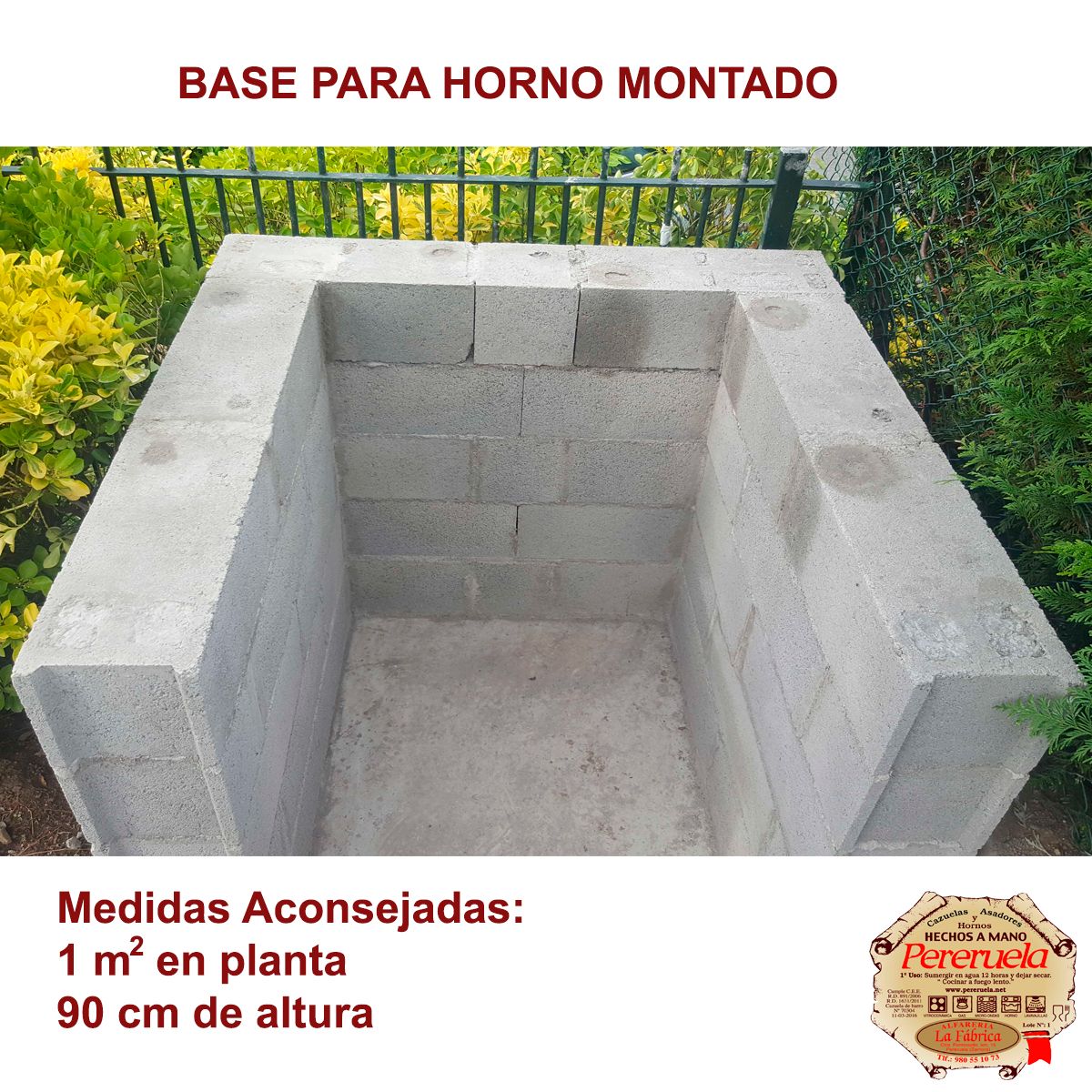 EN HORNO MONTADO:Estos apoyos forman una base cuadrada que ocupará 1 m2 en planta con 90 cm. de altura.