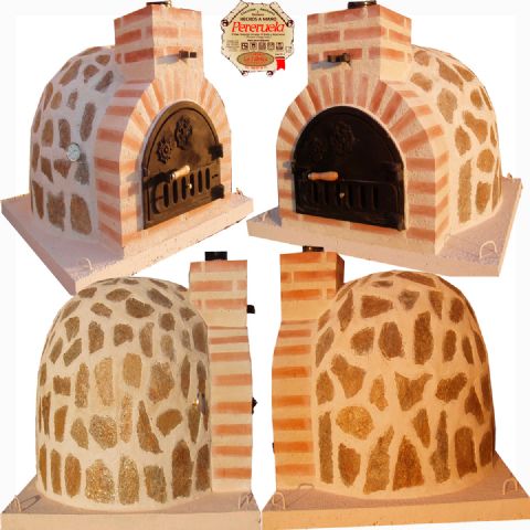 Terminado y listo para su utilización. El horno de leña para pan, pizza, asados, se entrega como un conjunto sólido y duradero. El horno de barro de Pereruela se recubre y asila con materiales de primera calidad, varias capas de arcilla refractaria, fibra cerámica y cemento refractario, gracias al excelente aislamiento térmico, se calienta rápidamente, mantiene el calor durante mucho tiempo y hace que consuma muy poca leña, la PUERTA de hierro es especial para los hornos de leña, tiene regulación de entrada de aire para un mejor control de temperatura, además dispone de un CRISTAL anti-calórico. La CHIMENEA con regulación de salida de humo se encuentra en el frontal del horno lo que hace que la cámara interior no pierda calor. El TERMÓMETRO, situado en el lateral del horno nos indica la temperatura más fiable del interior del horno. Toda la construcción se realiza sobre una base de hormigón de 6 cm de espesor. Placa de Hormigón armado con mallazo de acero y enganches en las esquinas para facilitar su movilidad y colocación.
